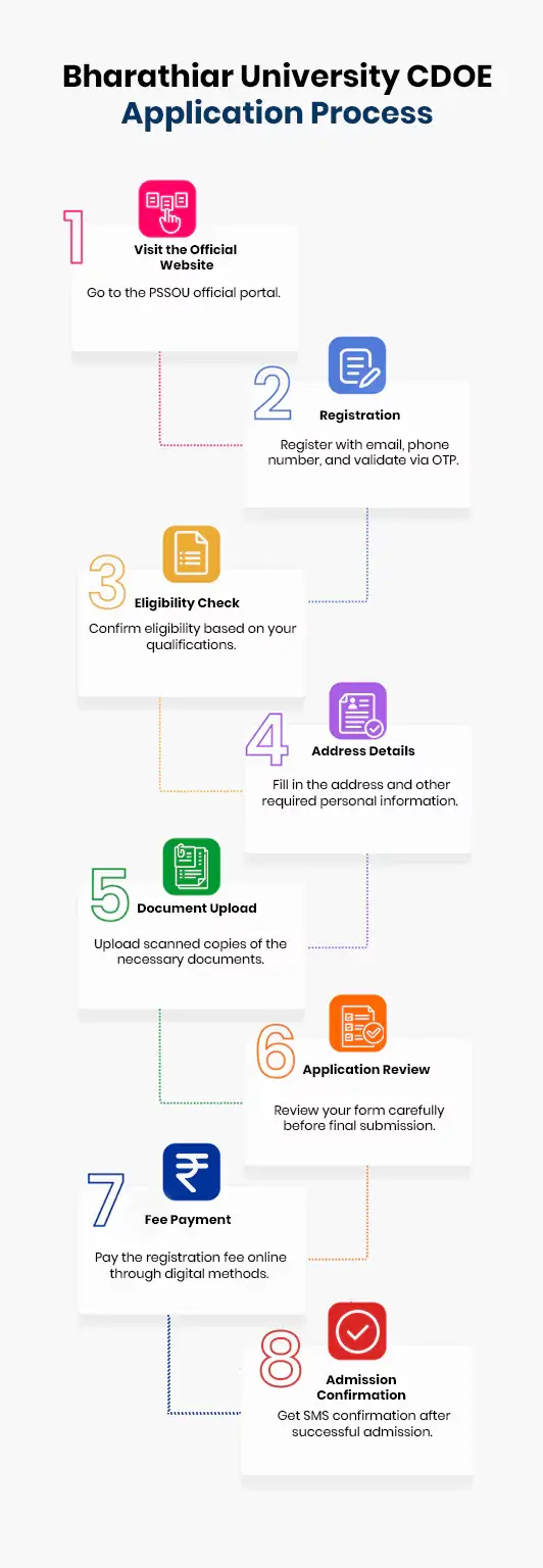 Bharathiar University Distance Education (SDE/CDOE) also provides online courses. The university accepts applications for undergraduate and graduate programs online and through the contact information given and online application form. It is a state university with an NAAC A++ rating, classified as Category-I by the UGC, and ranked 26th by MoE-NIRF. Admissions are open for various courses in 2026. Admissions take place in two sessions, and applications must be submitted by the deadline. Students who want to pursue a degree at this university can apply online. This university is nationally recognized, so students can pursue their careers without worry.
